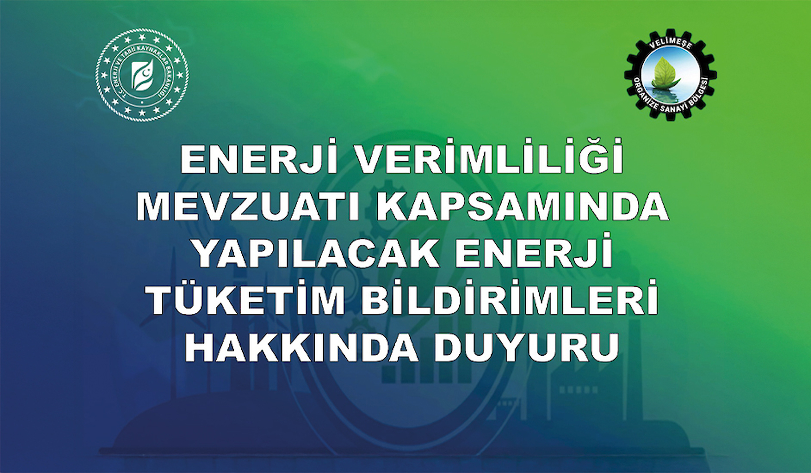 2. OSB Müdürlüğüne Veri Bildirim Zorunluluğu (TÜM FİRMALAR İÇİN): Velimeşe OSB Bölge Müdürlüğü olarak, Enerji Kaynaklarının ve Enerjinin Kullanımında Verimliliğin Artırılmasına Dair Yönetmelik gereği, bölgemizin toplam enerji tüketim verilerini ve işletme istatistiklerini Bakanlığa raporlamakla yükümlüyüz.